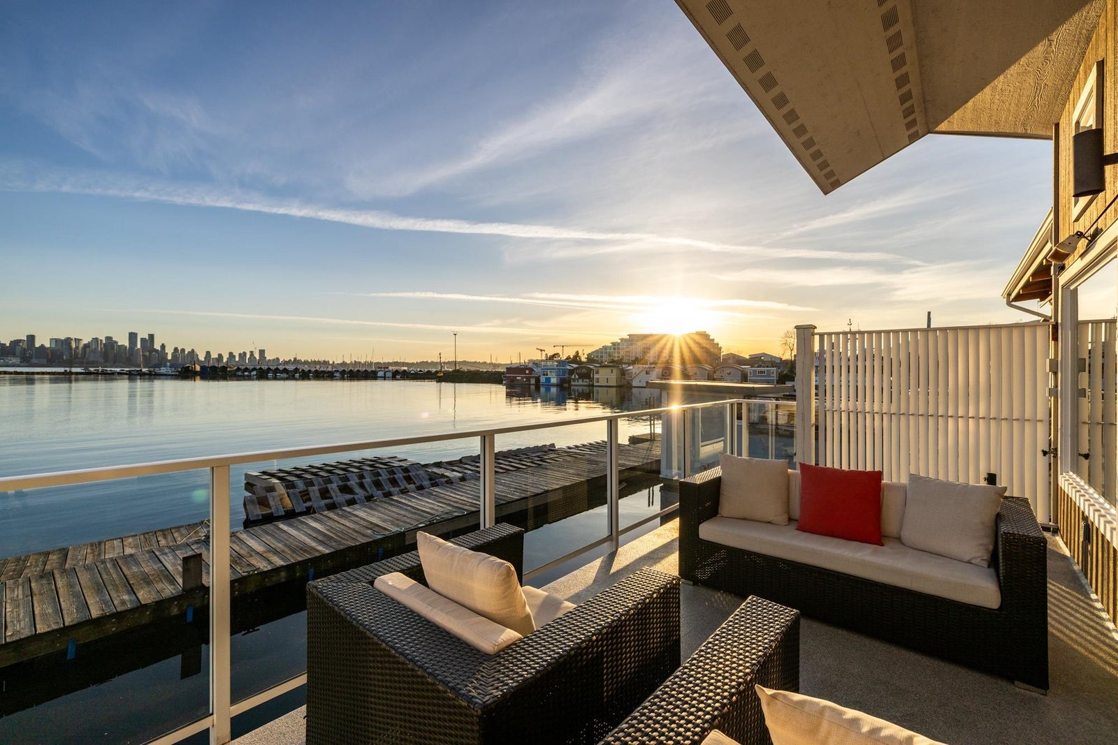 Elevate your lifestyle with this thoughtfully designed 2 bed & den, 2 bath float home at Mosquito Creek Marina, offering a rare blend of waterfront tranquility and urban convenience. Framed by unobstructed views of downtown Vancouver, the home’s bright, open-concept living space flows seamlessly onto a generous private balcony—an ideal setting for morning coffee or evening entertaining. The primary suite features an adjoining flex space, perfect for a home office or gym. A dedicated workshop provides room for creative pursuits or additional storage. The well-appointed kitchen is equipped with premium Bosch and Fisher & Paykel appliances. Set along the scenic Spirit Trail, you are a seven-minute walk to the SeaBus and Shipyards Shops. An exceptional, low-maintenance waterfront opportunity.